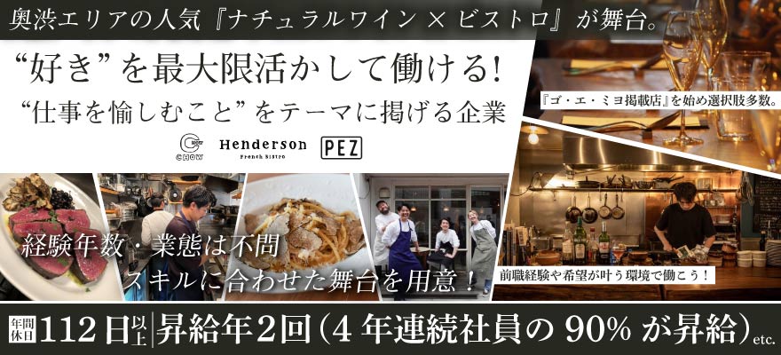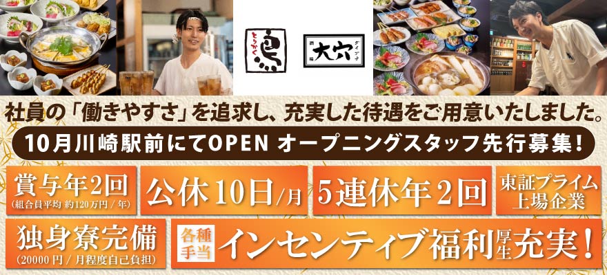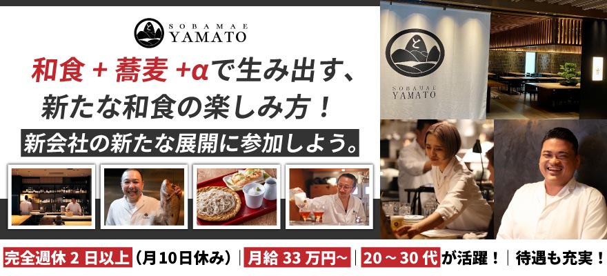 | 募集職種 | 1.料理長・料理長候補 、2.調理師・キッチンスタッフ 、3.調理見習い 、4.蕎麦職人・うどん職人 、5.店長・店長候補 、6.ホールスタッフ 、7.パティシエ・製菓 、8.パン職人・パン製造 、9.本部スタッフ |