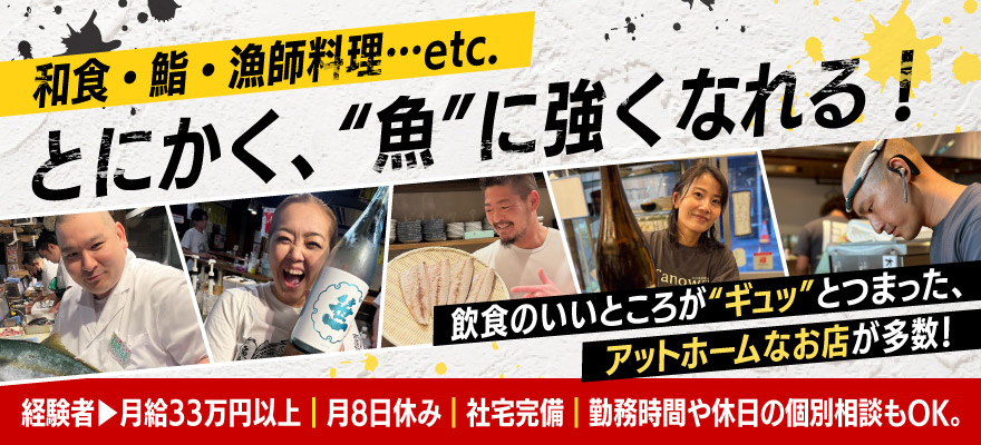 | エリア | 【各店舗】 東京、神奈川、千葉、埼玉、ほか 【本社】 株式会社グローバルダイニング 東京都港区南青山7-1-5コラム8階 ※希望を考慮いたします ※無理な転勤はありません... |