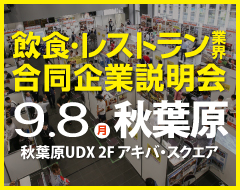 | 募集職種 | 1.料理長・料理長候補 、2.調理師・キッチンスタッフ 、3.ホールスタッフ 、4.調理見習い 、5.蕎麦職人・うどん職人 、6.焼鳥職人 、7.店長・店長候補 、8.SV 、9.その他 、10.食品加工・製造 、11.【他】料理長・料理長候補 、12.【他】調理師・キッチンスタッフ 、13.【他】調理見習い 、14.【他】蕎麦職人・うどん職人 、15.【他】焼鳥職人 、16.【他】店長・店長候補 、17.【他】ホールスタッフ 、18.【ア】調理師・キッチンスタッフ 、19.【ア】ホールスタッフ |
