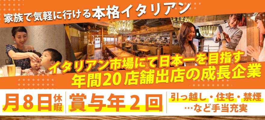 | 募集職種 | 1.料理長・料理長候補 、2.調理師・キッチンスタッフ 、3.店長・店長候補 、4.ホールスタッフ 、5.SV |
