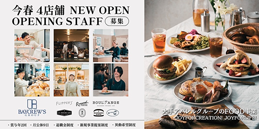 | 募集職種 | 1.調理師・キッチンスタッフ 、2.ホールスタッフ 、3.店長・店長候補 、4.料理長・料理長候補 、5.食品加工・製造 、6.【契】調理師・キッチンスタッフ 、7.【契】ホールスタッフ 、8.【ア】調理師・キッチンスタッフ 、9.【ア】ホールスタッフ 、10.【ア】販売 |