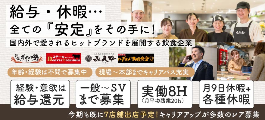 【将来性抜群】飲食業界をリードする、安定&成長企業が母体!