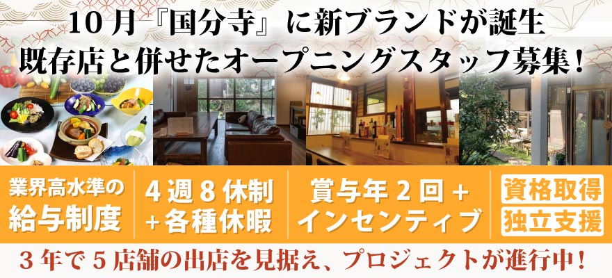 | 募集職種 | 1.料理長・料理長候補 、2.店長・店長候補 、3.調理師・キッチンスタッフ 、4.ホールスタッフ 、5.調理見習い 、6.ピッツァイオーロ 、7.女将・和装ホール 、8.バーテンダー 、9.ソムリエ 、10.レセプショニスト 、11.鉄板調理 、12.パティシエ・製菓 、13.寿司職人 、14.焼鳥職人 、15.【ア】調理師・キッチンスタッフ 、16.【ア】ホールスタッフ 、17.【ア】レセプショニスト 、18.【ア】バーテンダー 、19.本部スタッフ 、20.SV |