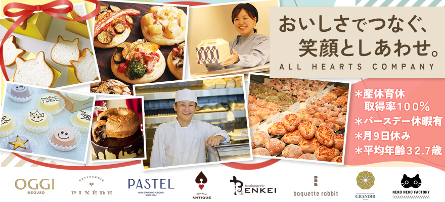 | 募集職種 | 1.パン職人・パン製造 、2.パティシエ・製菓 、3.調理師・キッチンスタッフ 、4.ホールスタッフ 、5.ソムリエ 、6.バリスタ 、7.販売 、8.料理長・料理長候補 、9.店長・店長候補 |