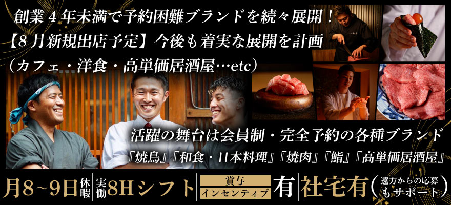 株式会社Human Qreate/『厳選焼鳥 一石三鳥 本店』『一石三鳥 別邸』『鮨 八咫烏』他