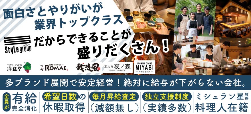 | 募集職種 | 1.料理長・料理長候補 、2.店長・店長候補 、3.調理師・キッチンスタッフ 、4.ホールスタッフ |