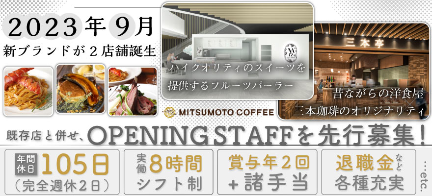 | 募集職種 | 1.料理長・料理長候補 、2.調理師・キッチンスタッフ 、3.店長・店長候補 、4.ホールスタッフ 、5.【ア】ホールスタッフ 、6.【ア】調理師・キッチンスタッフ |