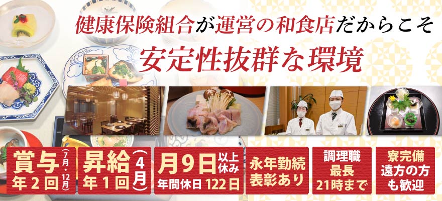 | 募集職種 | 1.料理長・料理長候補 、2.寿司職人 、3.鉄板調理 、4.天ぷら職人 、5.店長・店長候補 、6.調理師・キッチンスタッフ 、7.調理見習い |
