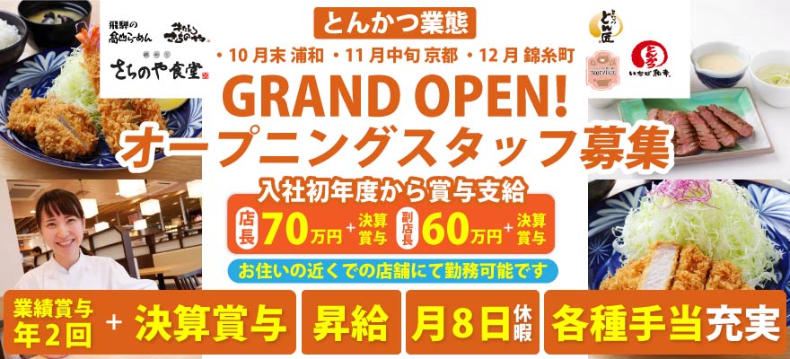 | 募集職種 | 1.店長・店長候補 、2.料理長・料理長候補 、3.SV 、4.調理師・キッチンスタッフ 、5.ホールスタッフ 、6.調理見習い |