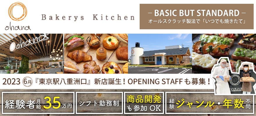 | 募集職種 | 1.店長・店長候補 、2.調理師・キッチンスタッフ 、3.ホールスタッフ 、4.販売 、5.パン職人・パン製造 |