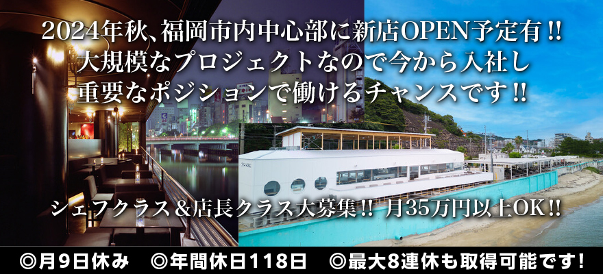 | 募集職種 | 1.料理長・料理長候補 、2.調理師・キッチンスタッフ 、3.店長・店長候補 、4.ホールスタッフ 、5.【ア】ホールスタッフ 、6.【ア】調理師・キッチンスタッフ |