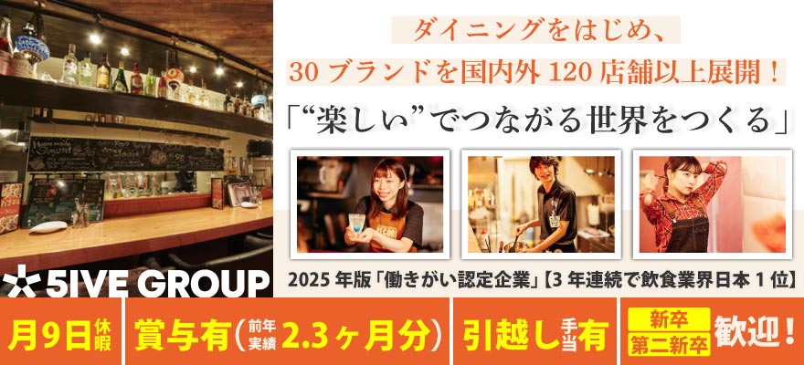【全社員が月9日休み】首都圏・関西で、多彩な飲食店を展開!