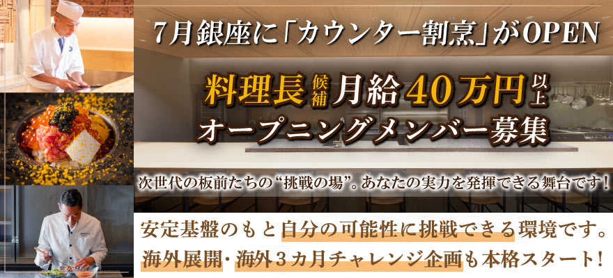 天ぷら・鮨・鉄板焼の3ジャンルで採用強化