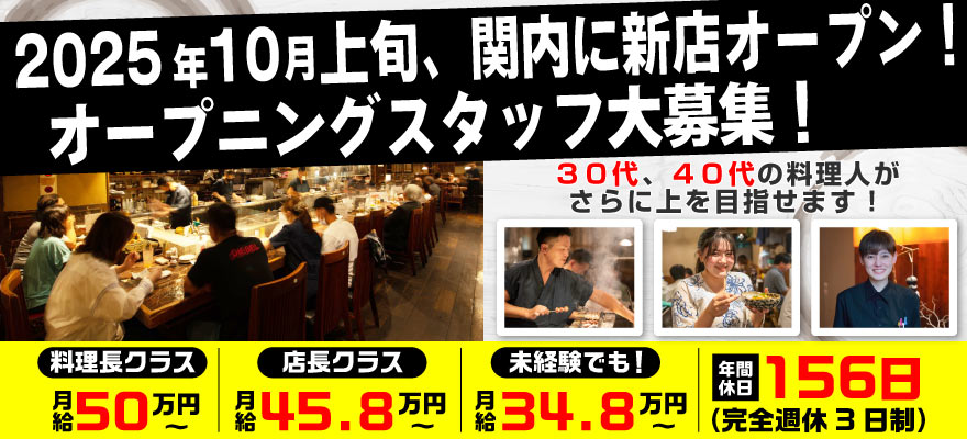 年末年始、4店舗同時OPEN!採用拡大中