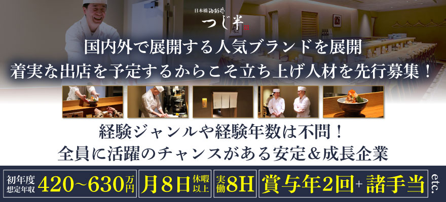 出店も予定し寿司職人&ホール両部門募集!