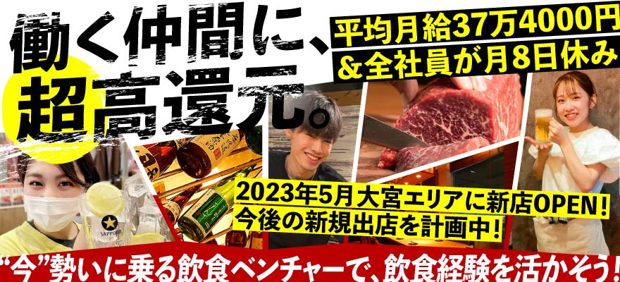 | 募集職種 | 1.料理長・料理長候補 、2.店長・店長候補 、3.寿司職人 、4.調理師・キッチンスタッフ 、5.蕎麦職人・うどん職人 、6.ホールスタッフ 、7.販売 |