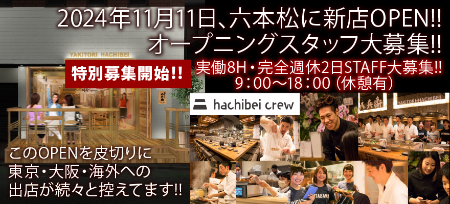 | 募集職種 | 1.SV 、2.店長・店長候補 、3.料理長・料理長候補 、4.焼鳥職人 、5.天ぷら職人 、6.調理師・キッチンスタッフ 、7.ホールスタッフ 、8.調理見習い 、9.【ア】調理師・キッチンスタッフ 、10.【ア】ホールスタッフ 、11.【ア】調理見習い |