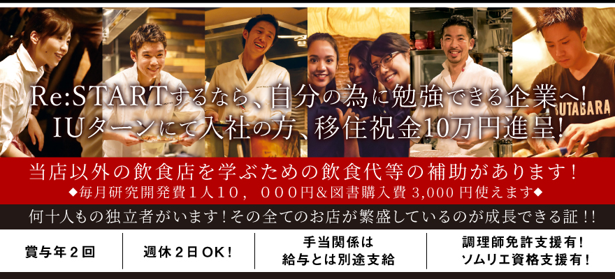 | 募集職種 | 1.【契】調理師・キッチンスタッフ 、2.【契】調理見習い 、3.【契】ホールスタッフ 、4.料理長・料理長候補 、5.店長・店長候補 、6.焼鳥職人 、7.調理師・キッチンスタッフ 、8.ホールスタッフ 、9.【ア】調理師・キッチンスタッフ 、10.【ア】ホールスタッフ |