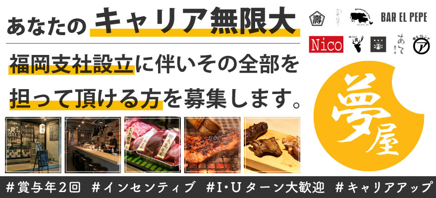 | 募集職種 | 1.料理長・料理長候補 、2.調理師・キッチンスタッフ 、3.ホールスタッフ 、4.調理見習い 、5.店長・店長候補 、6.寿司職人 、7.焼鳥職人 、8.本部スタッフ 、9.その他 、10.バーテンダー |