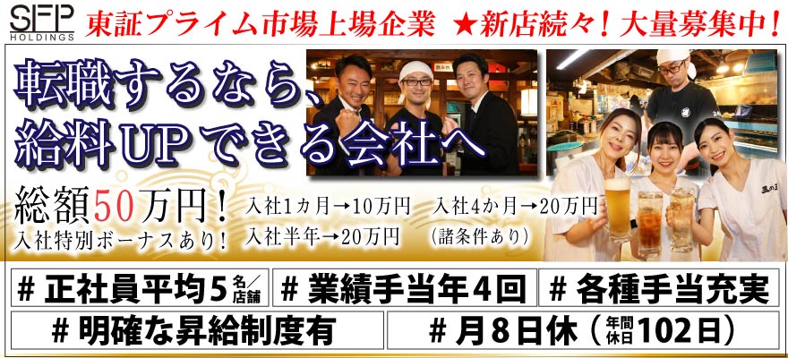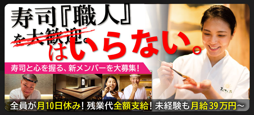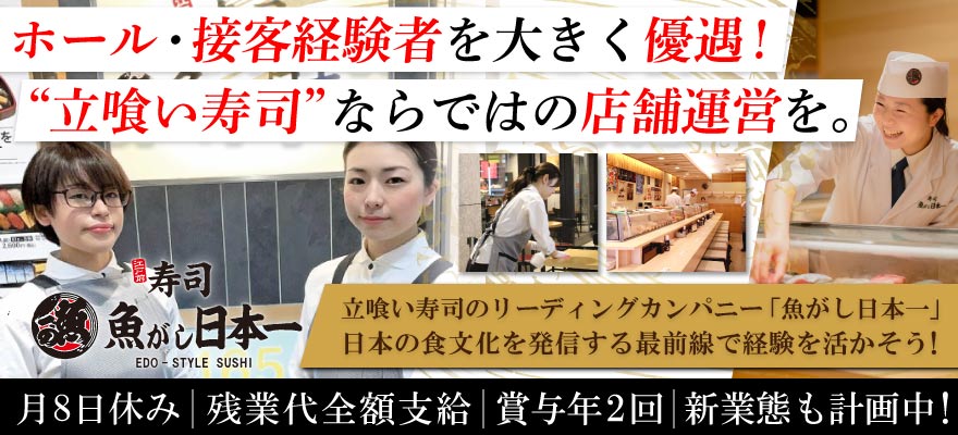 募集職種 1.料理長・料理長候補 、2.店長・店長候補 、3.寿司職人 、4.調理師・キッチンスタッフ 、5.蕎麦職人・うどん職人 、6.ホールスタッフ 、7.販売