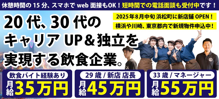 【全社員が月9日休み】首都圏・関西で、多彩な飲食店を展開!