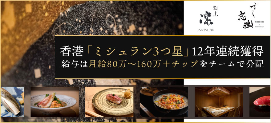 | 募集職種 | 1.料理長・料理長候補 、2.調理師・キッチンスタッフ 、3.寿司職人 |