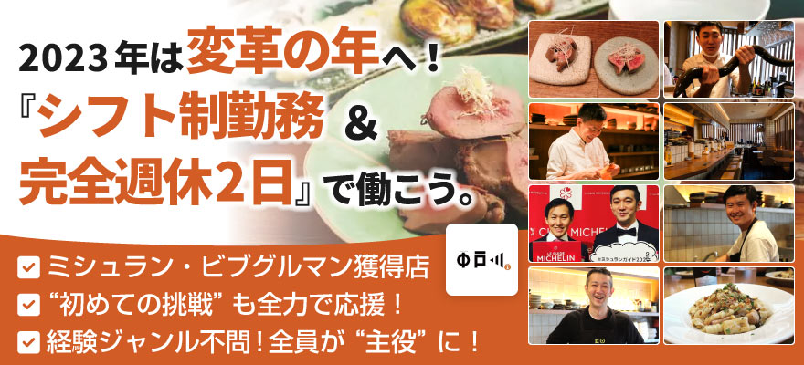 | 募集職種 | 1.料理長・料理長候補 、2.調理師・キッチンスタッフ 、3.店長・店長候補 、4.ホールスタッフ 、5.SV |